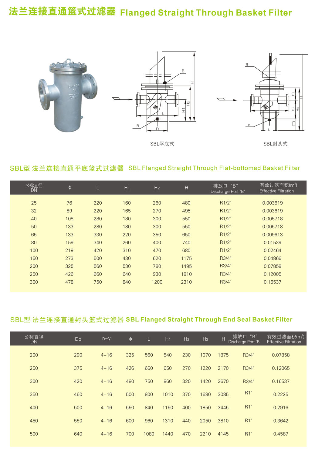 籃式過濾器主要由接管、主管、濾藍、法蘭、法蘭蓋及緊固件等組成。當液體通過主管進入濾藍后,固體雜質顆粒被阻擋在濾藍內,而潔凈的流體通過濾藍、由過濾器出口排出。當需要清洗時,旋開主管底部螺塞,排凈流體,拆卸法蘭蓋,清洗后重新裝入即可。因此,使用維護為方便。