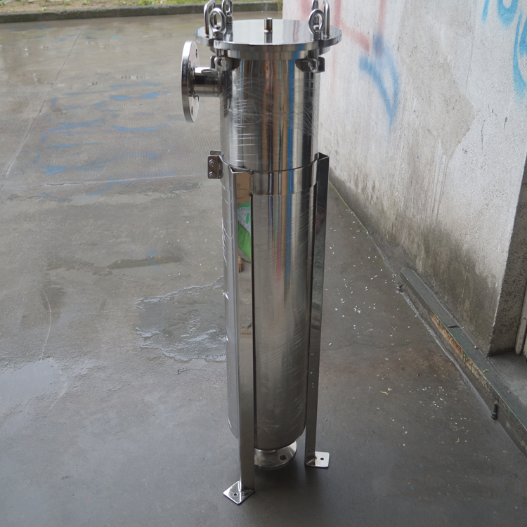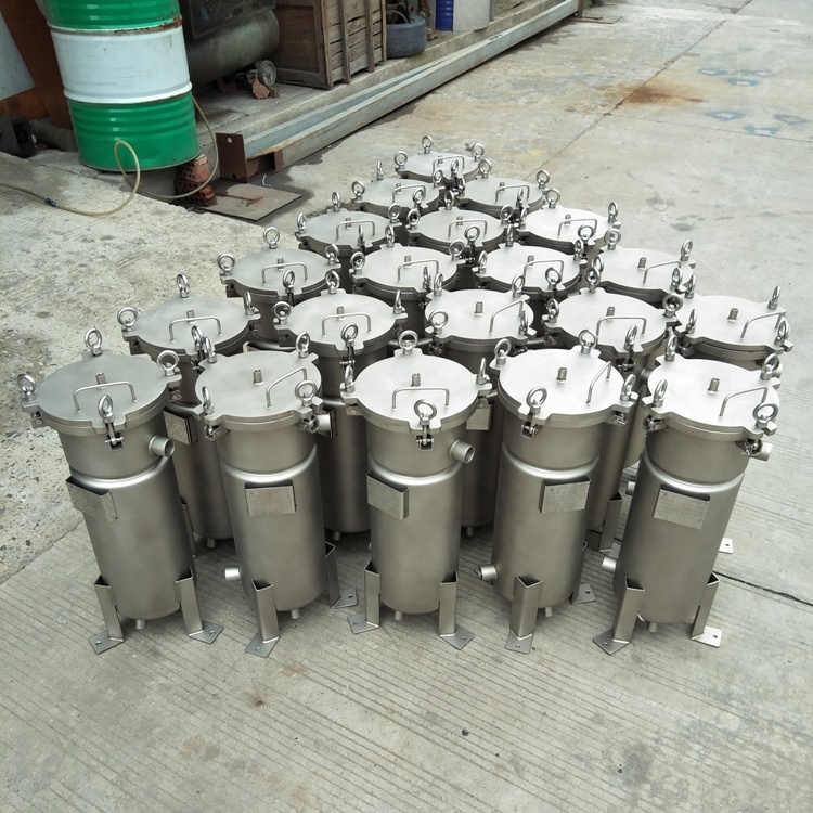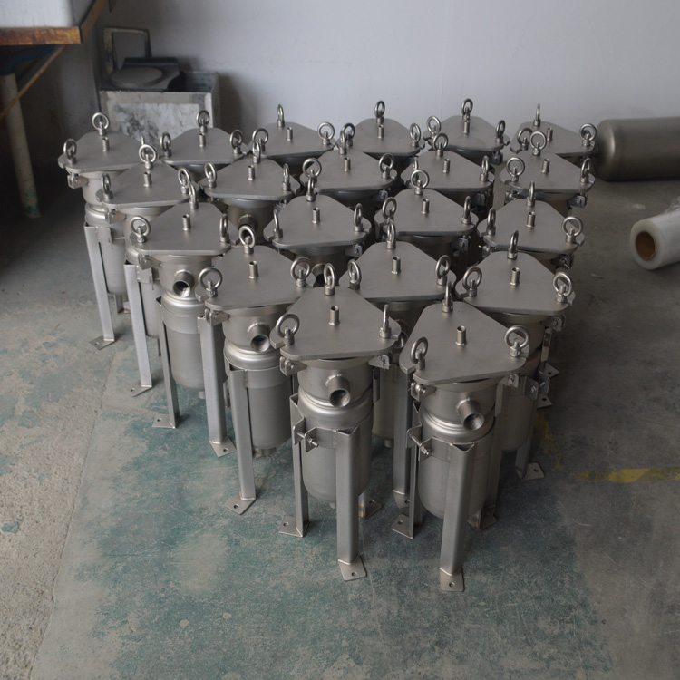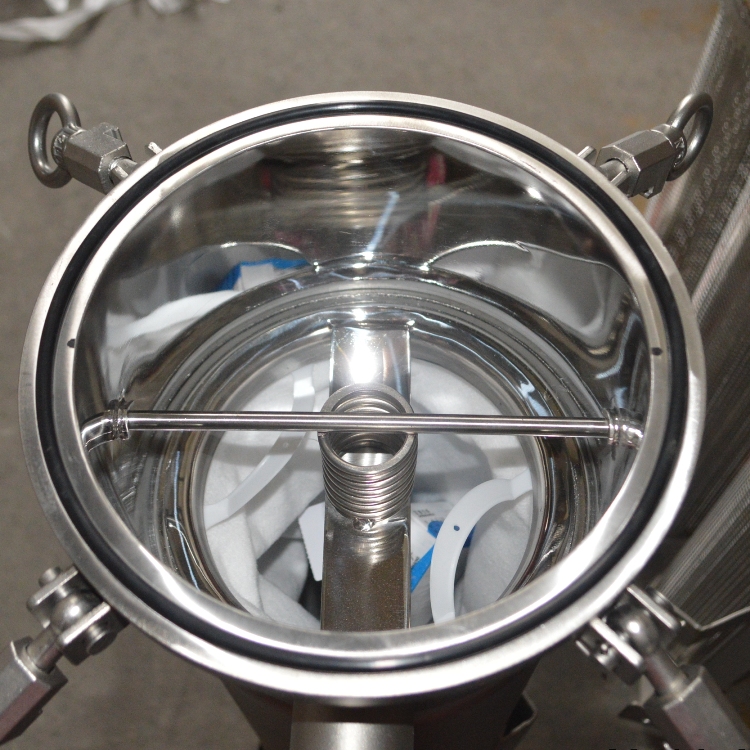 袋式過(guò)濾器是一種壓力式過(guò)濾裝置,主要有過(guò)濾筒體、過(guò)濾筒蓋和快開(kāi)機(jī)構(gòu)、不銹鋼濾袋加強(qiáng)網(wǎng)等主要部件組成,濾液由過(guò)濾機(jī)外殼的旁側(cè)入口管流入濾袋,濾袋本身是裝置在加強(qiáng)網(wǎng)籃內(nèi),液體滲透過(guò)所需要細(xì)度等級(jí)的濾袋即能獲得合格的濾液,雜質(zhì)顆粒被濾袋攔截。該機(jī)更換濾袋十分方便,過(guò)濾基本無(wú)物料消耗。具備構(gòu)造合理、密封性好、流通量大、操作簡(jiǎn)便等特點(diǎn)。濾袋側(cè)漏機(jī)率小,能有效地保障過(guò)濾精度,并能快捷地更換濾袋,使得操作成本下降。